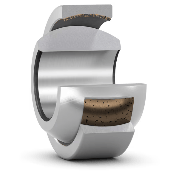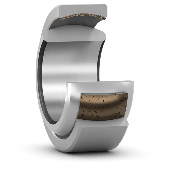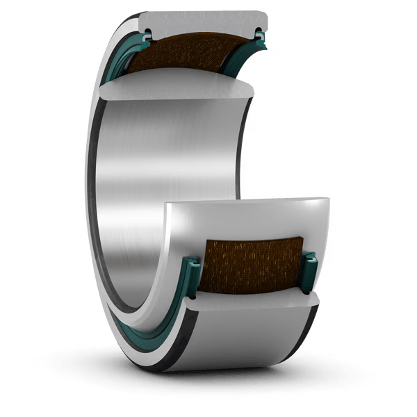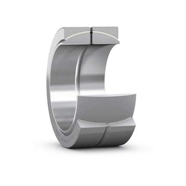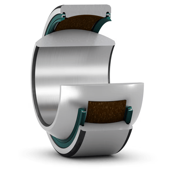 Радиальные подшипники скольжения SKF сферической формы с антифрикционным материалом используются как опора валов и осей для уменьшения потери энергии трения. Конструкция радиального подшипника скольжения включает внутреннее кольцо, наружный диаметр которого сферически выпуклый, и внешнее кольцо с внутренней поверхностью сферически вогнутой формы. Кольца механизма изготовлены из подшипниковой стали.