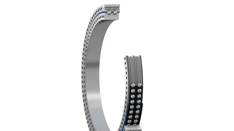 Опорно-поворотные устройства SKF с шариковыми подшипниками с восьмиточечным контактом специально разработаны для обеспечения максимальной грузоподъёмности при определённом диаметре и гарантированной надёжной работы в условиях высоких нагрузок. В конструкции таких подшипников СКФ используются два ряда шариков, которые установлены в наружное и внутреннее кольца, имеющие глубокие арочные дорожки качения. Благодаря уникальной системе восьмиточечного контакта достигается оптимальное распределение нагрузок. Это позволяет подшипнику эффективно воспринимать не только осевые, но и радиальные нагрузки, что делает его универсальным решением для самых разнообразных сфер применения.
